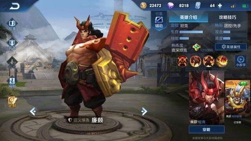 在《廉颇荣耀典藏》中,玩家可以选择多种角色进行游戏。每个角色都有自己独特的技能和战斗风格。比如,廉颇作为游戏的主角,他的技能以强大的防御和稳定的输出为主,是团队中的坚实后盾。